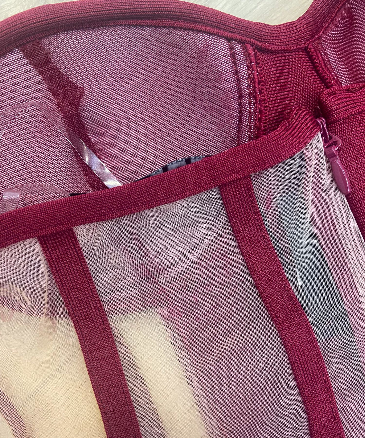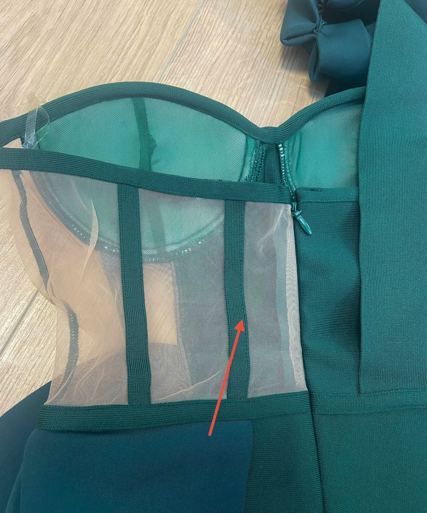 • Od iza na prozirnom dijelu haljine su tragovi boje, pogledati dodatne fotografije.