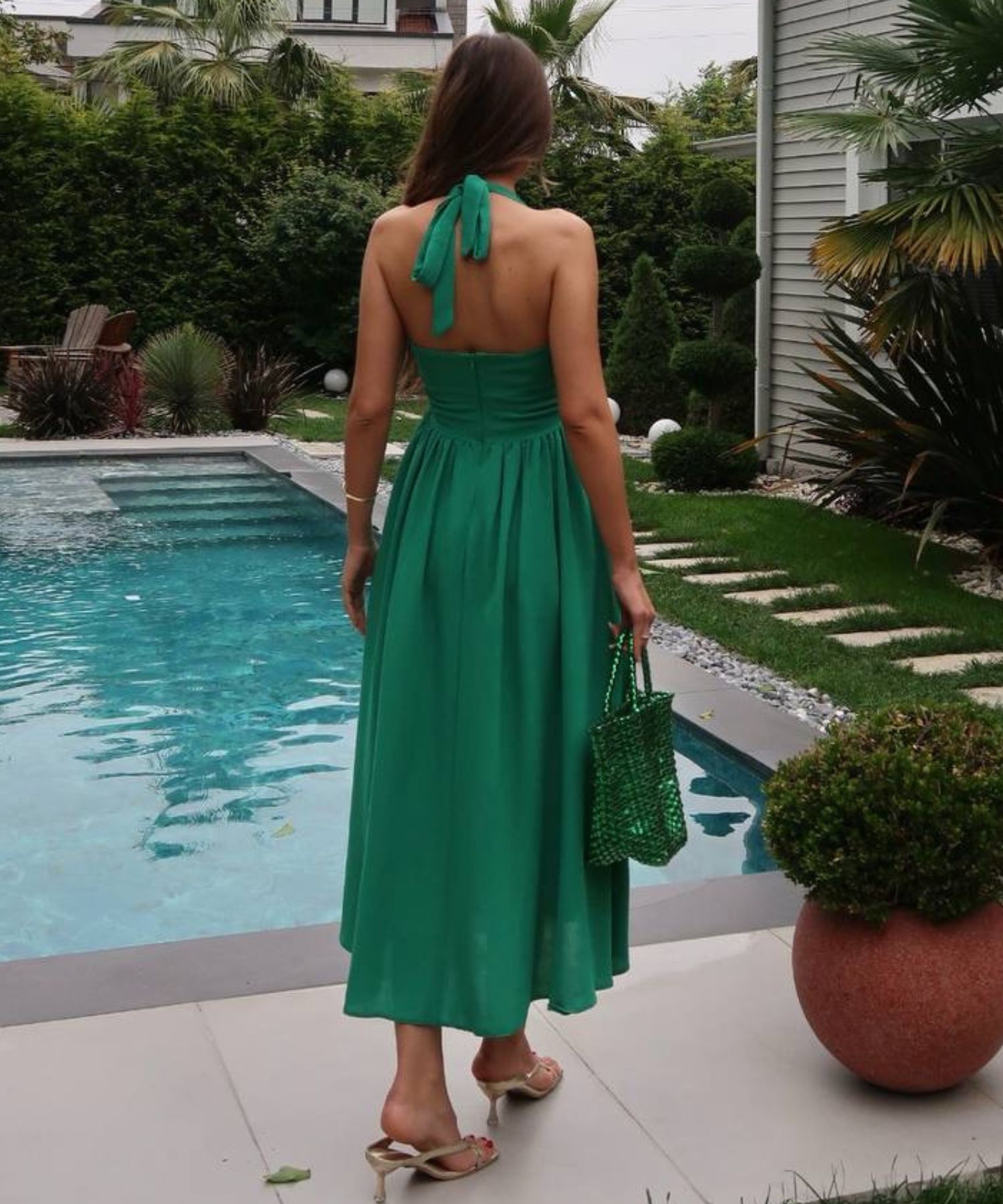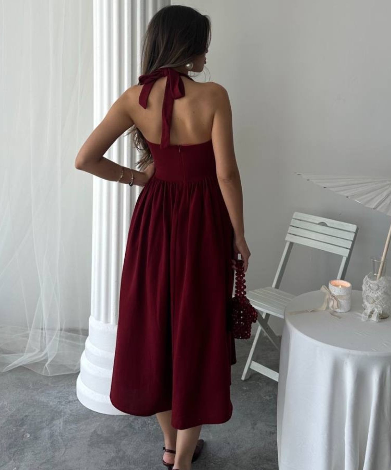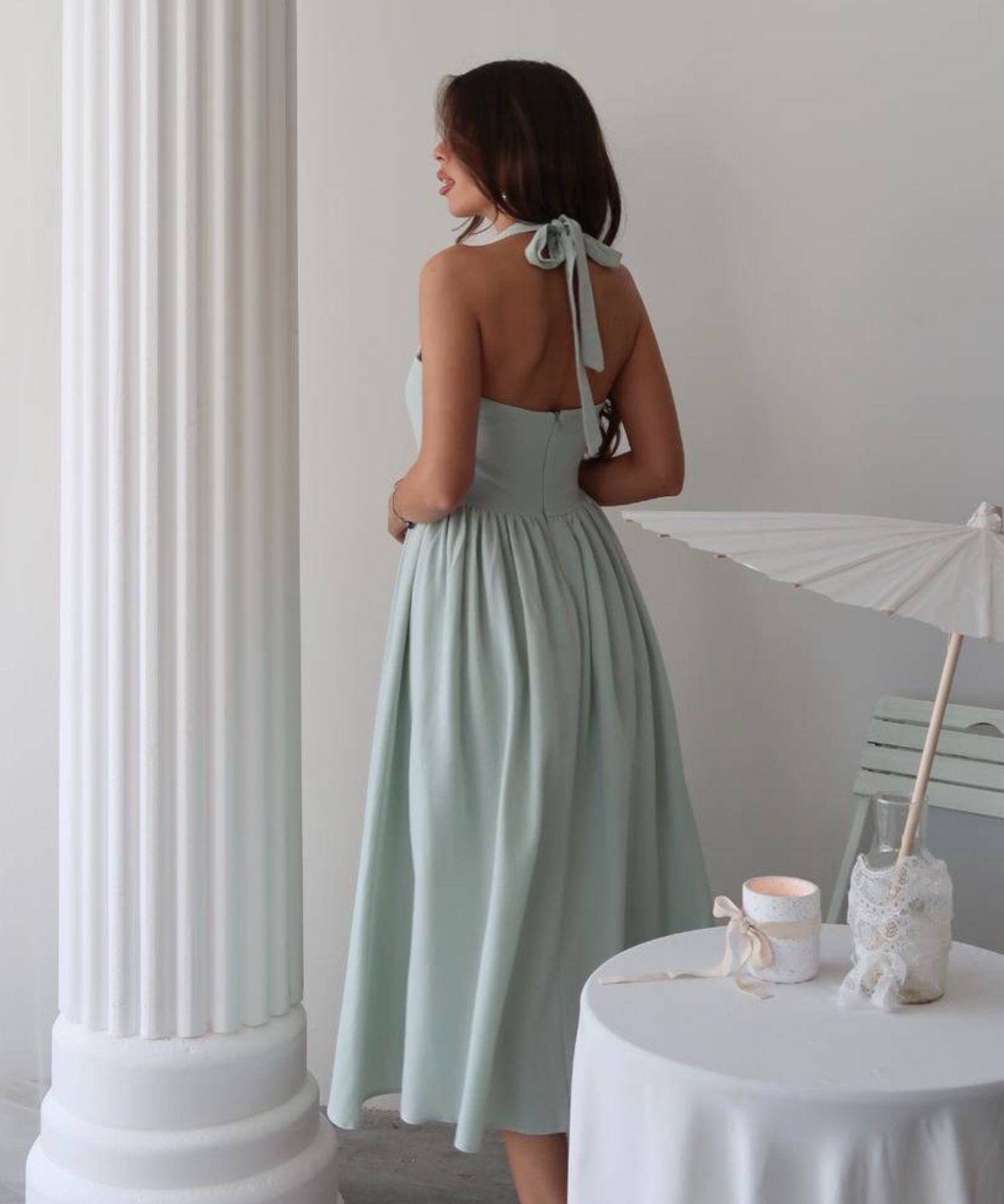 • Haljina ima podstavu i patent na sredini leđa.