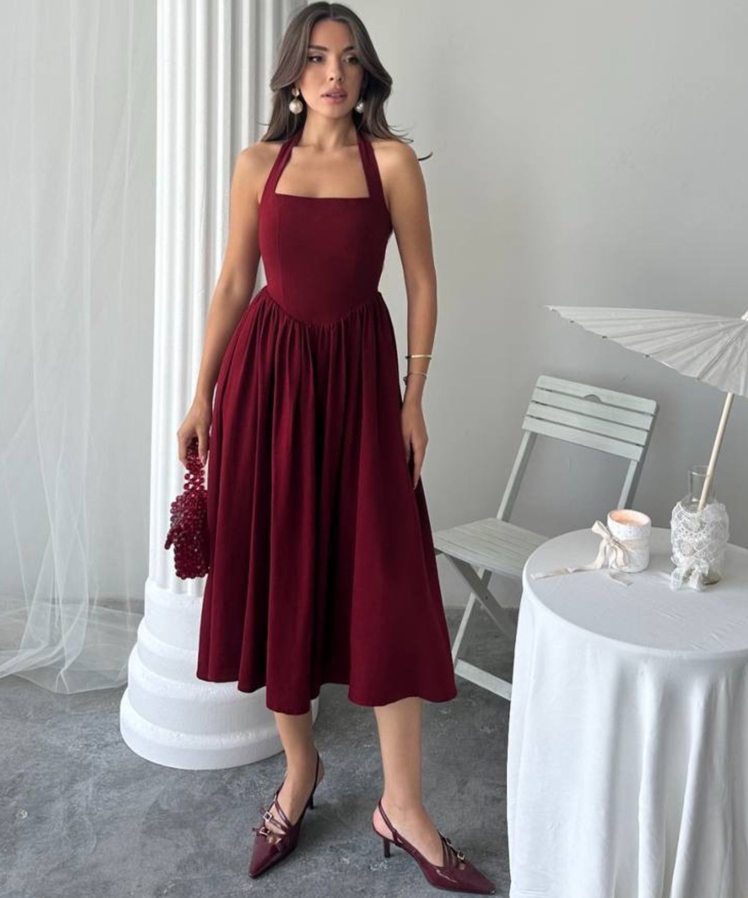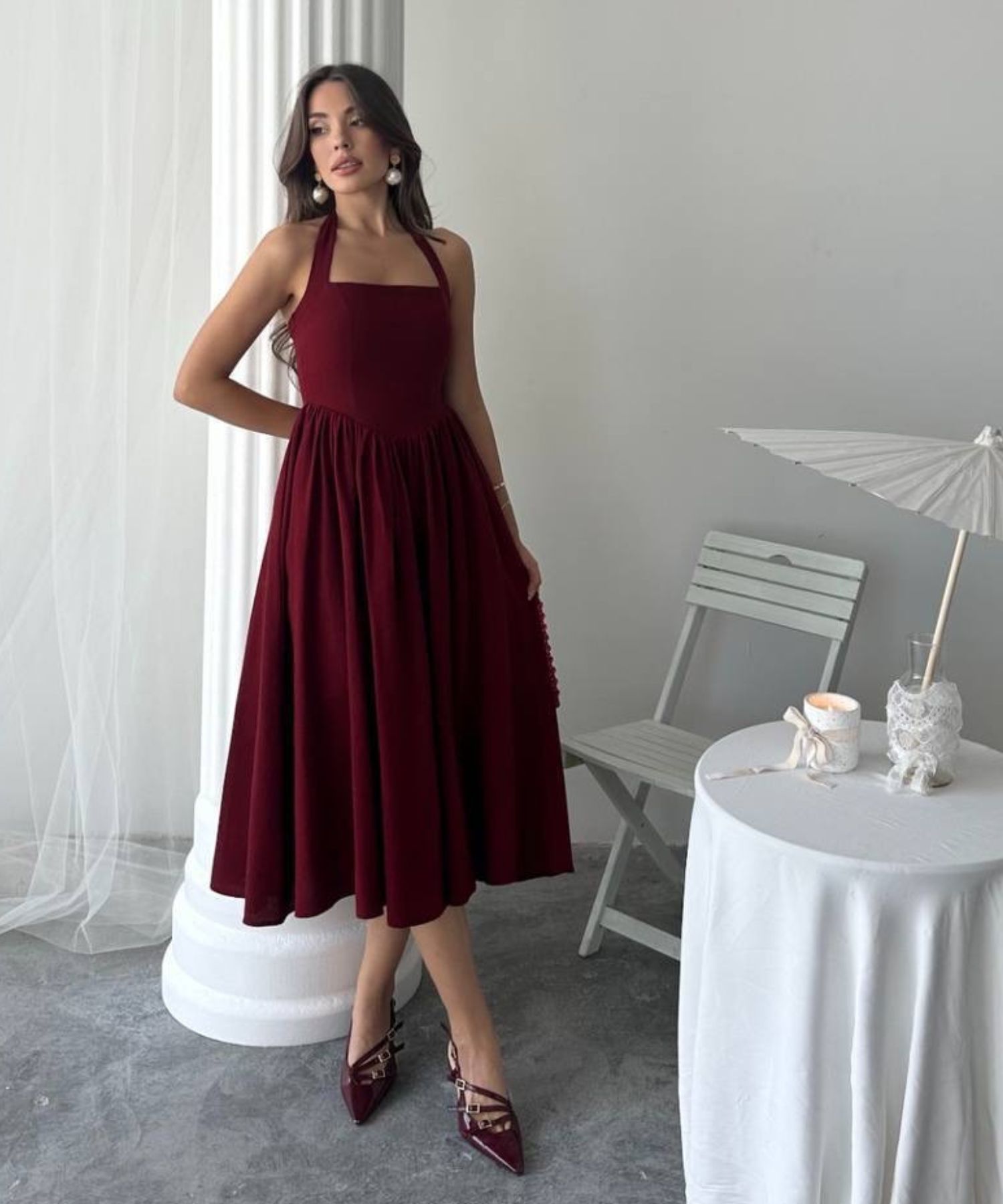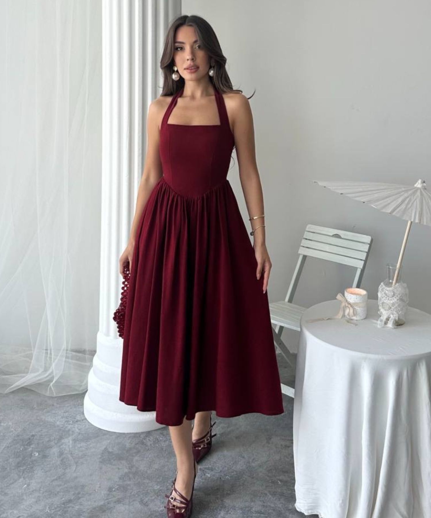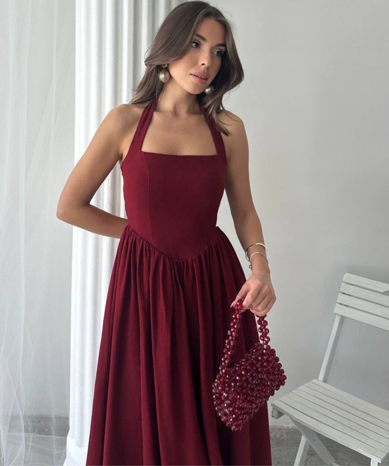 • Haljina ima podstavu i patent na sredini leđa.