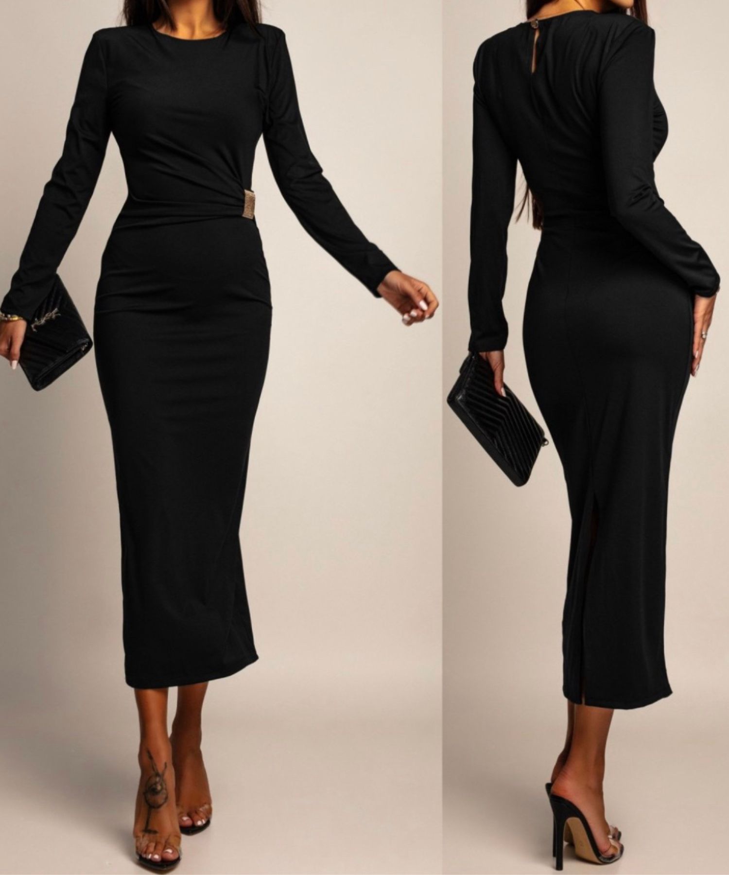 • Haljina ima ukrasnu kopču te prorez od iza